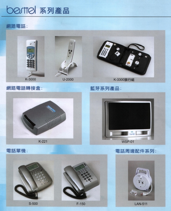 Besttel 拓荒者總機擁有30年的歷史,是台灣最為知名之品牌總機,並以品質卓越及價錢合理在台灣及國外市場著稱;現在更搭配 Besttel 倍仕特 Skype 網路電話盒成為Skype網路總機TAT-108 Besttel 拓荒者 Skype 總機,非常適合中小家庭、中小型企業、網路重度使用者、愛哈啦的年輕朋友以及打電話常被罵的電話族(電話費太高)。