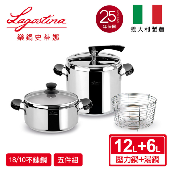 Lagostina樂鍋史蒂娜 La Classica 經典款壓力鍋五件組(12L+6L) LA-01000160000569955Lagostina樂鍋史蒂娜 La Classica 經典款壓力鍋五件組(12L+6L) LA-010001600005 17,580