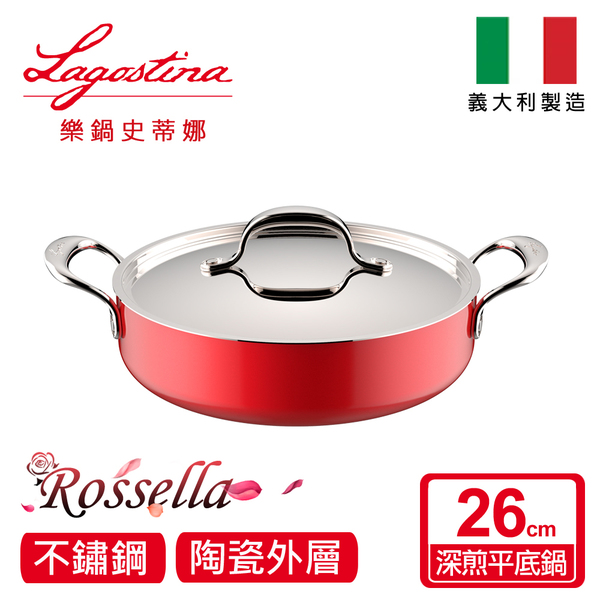 LAGOSTINA樂鍋 ROSSELLA時尚紅系列26CM不鏽鋼雙耳深煎平底鍋 (加蓋) LA-01120603182669946LAGOSTINA樂鍋 ROSSELLA時尚紅系列26CM不鏽鋼雙耳深煎平底鍋 (加蓋) LA-011206031826 7,880