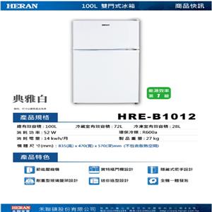HERAN禾聯 100L一級節能雙門小冰箱 HRE-B101269434HERAN禾聯 100L一級節能雙門小冰箱 HRE-B1012 7,999
