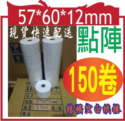 二聯發票機收銀機紙卷結帳空白紙捲57*60*12mm (3750元/150捲/,每捲25元)69292二聯發票機收銀機紙卷結帳空白紙捲57*60*12mm (3750元/150捲/,每捲25元) 3,750