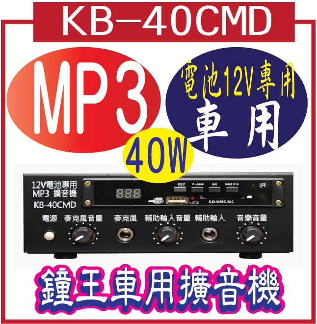 KB-40CMD68915KB-40CMD 供電方式:電池 12V專用鐘王車用擴音機