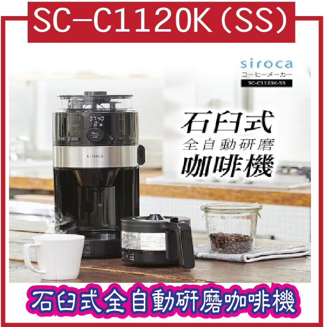 石臼式全自動研磨咖啡機SC-C1120K(SS)68440石臼式全自動研磨咖啡機SC-C1120K(SS)