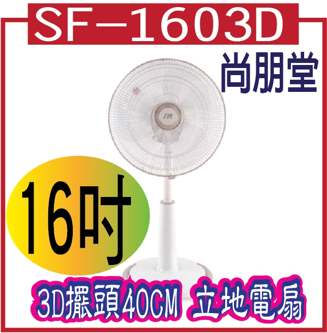 尚朋堂 3D擺頭40CM 立地電扇 SF-1603D67409尚朋堂 3D擺頭40CM 立地電扇 SF-1603D 1,198