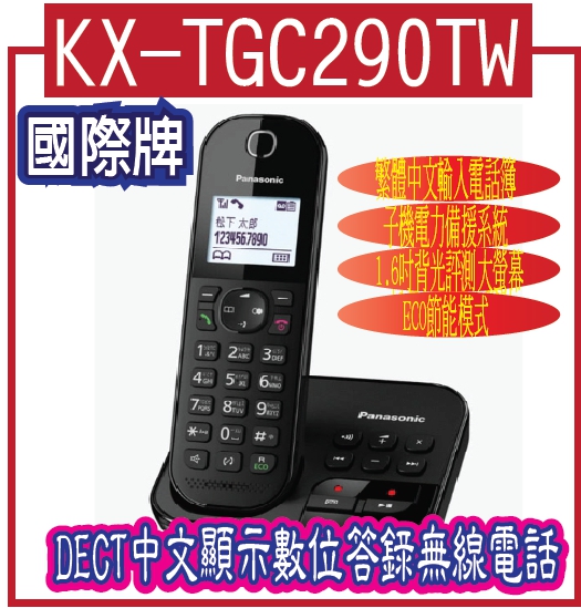 國際牌PANASONIC】DECT中文顯示數位答錄無線電話(KX-TGC290TW66474國際牌PANASONIC】DECT中文顯示數位答錄無線電話(KX-TGC290TW 2,888