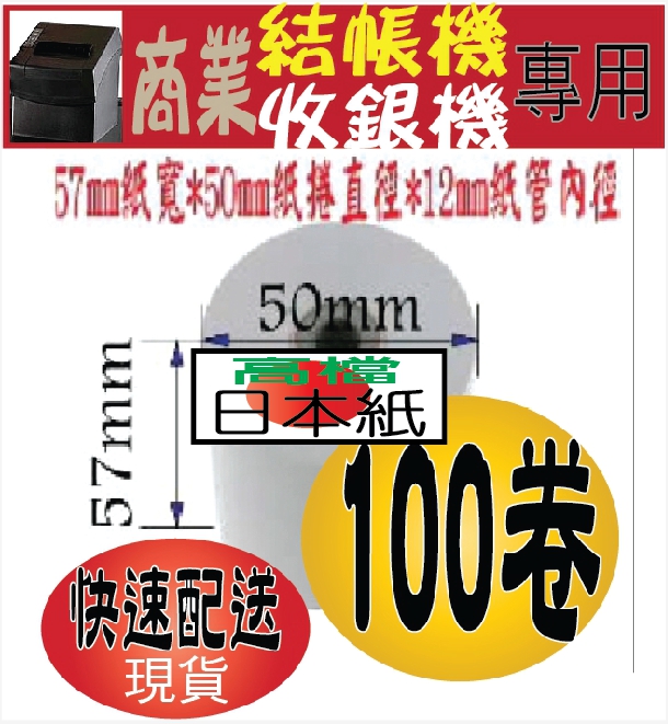 商業收銀機紙卷用 57*50*12 每箱100卷 x 超值組合64997商業收銀機紙卷用 .... 57*50*12 每箱100卷 x 超值組合 熱感紙卷 感熱紙卷 出單紙 出票紙 菜單紙 (不含雙酚A成份)@黑色包裝帶*20共100卷 5卷裝一袋共20個黑色袋@ 1,499
