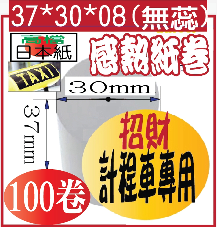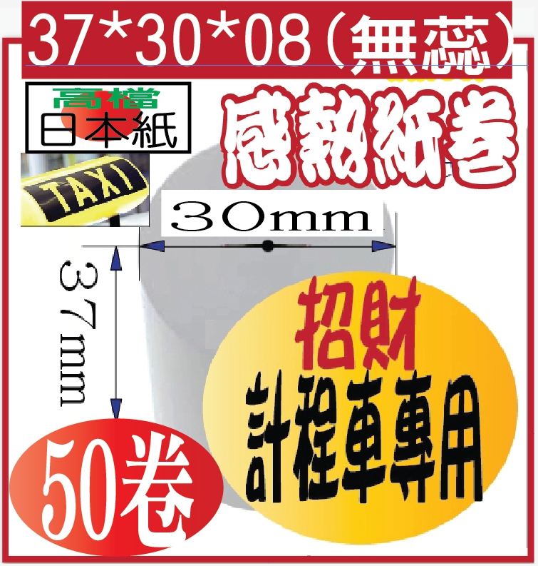 招財計程車新表專用熱感應紙捲37*31.5*08(無蕊)*外感50件超值組合 好朋友分享匯款價64048招財計程車新表專用熱感應紙捲37*30*08(無蕊)*外感 )*外感 黑色包裝帶@50件超值組合 好朋友分享匯款價 859