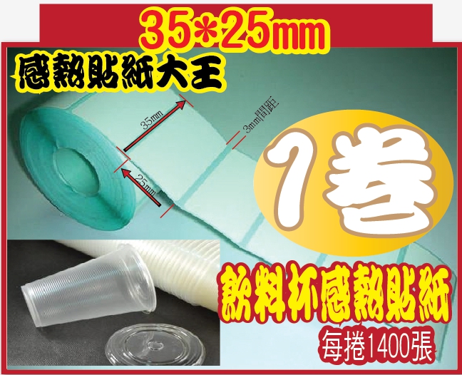 熱感貼紙/感熱貼紙 35*25mm*1400張63244熱感貼紙/感熱貼紙 35*25mm*1400張 飲料杯貼紙 直接可列印 不需碳帶 call 171 1022家優良廠商出貨
