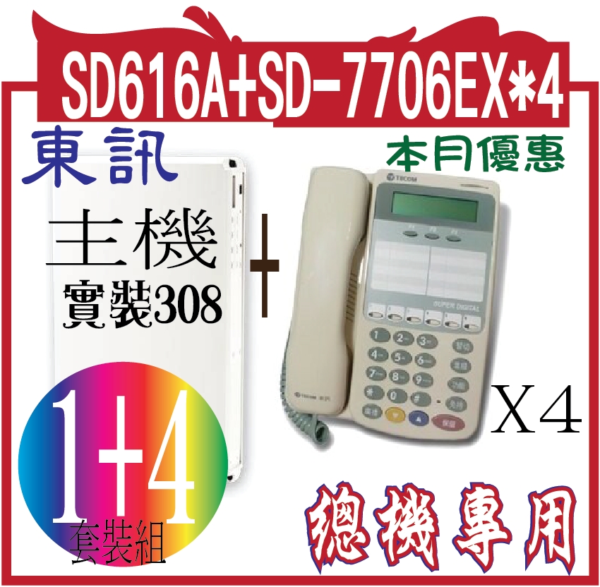 東訊SD-616A-7706EX*460811東訊●2020最新版SD-2213MB主機板SD-616主機(實裝308容量)*1台+SD-7706EX六鍵顯示型話機*4台 12,999