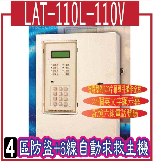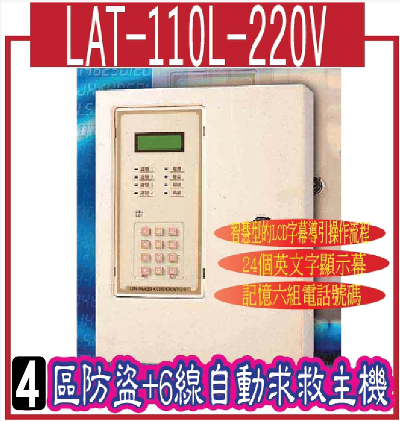 LAT-110L鐵殼~220V55290LAT-110L鐵殼~220V 4 區防盜+6線自動求救主機 @@訂製品約3天@@