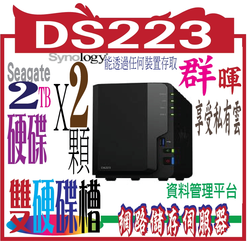 Synology DS223,附Seagate硬碟*2台84908Synology DS223,附Seagate硬碟*2台 12,999