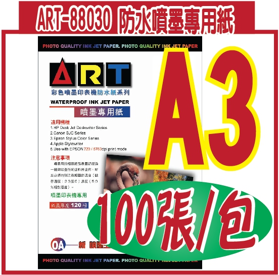 ART-8803033312噴墨防水紙 ( 720~5760DPI ) ART-88030 防水噴墨專用紙 A3 / 120 磅 100張 / 包 call 915 1021家優良廠商出貨