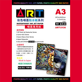 ART-213033106(日系) ART 高彩高白度~噴墨防水紙 130 磅系列 ( 720~5760 DPI ) ART-2130 防水噴墨專用紙 A3 / 130 磅 50張 / 包 280