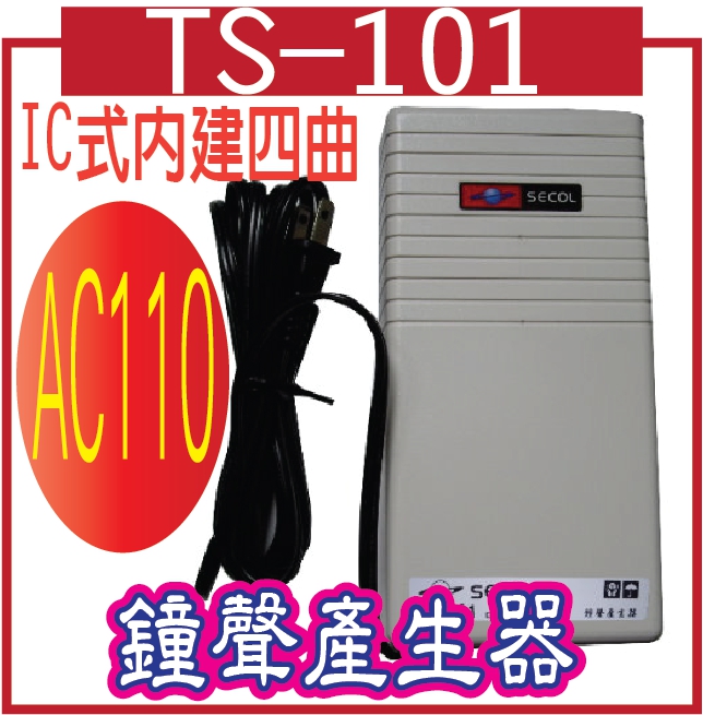TS-101鐘聲產生器TWO(2)成雙成對開運值組合 78112TS-101鐘聲產生器 這是專門用來產生報時鐘聲音樂的需連接「定時器」、「廣播系統」使用TWO(2)成雙成對開運值組合 4,772
