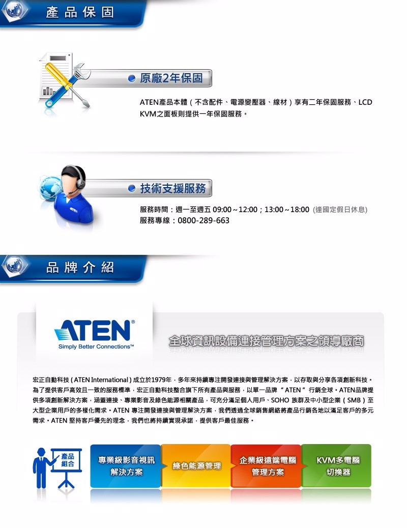 連接介面 控制端連接埠:鍵盤 1 x USB Type A 母頭 (黑) /螢幕 1 x HDB-15 母頭 (藍) 滑鼠 1 x USB Type A 母頭 (黑) 麥克風 1 x mini stereo Jack 母頭 (粉紅) 喇叭 1 x mini stereo Jack 母頭 (綠) / 電腦端連接埠: 2 x SPHD-18 母頭 (綠) / 電源: 1 x DC 5V Jack (備用)
