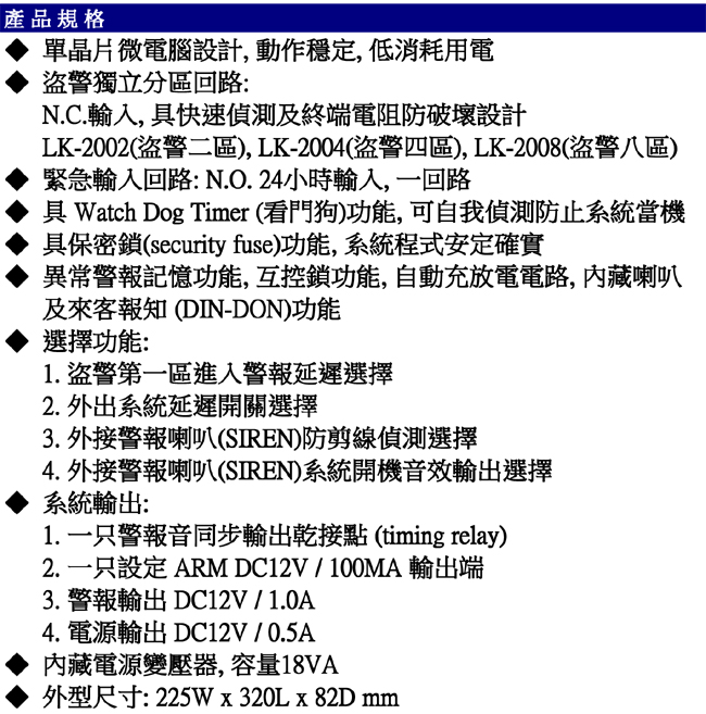防盜主機-->LK-2008 商品查詢代碼:QK21053