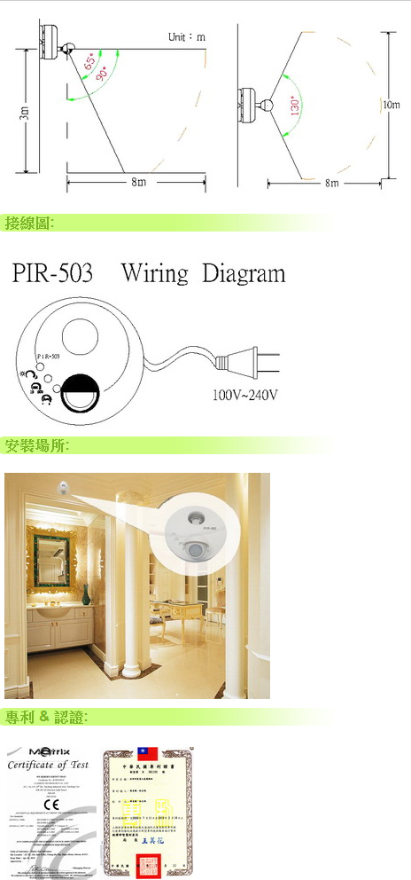 感應燈-->PIR-503商品查詢代碼:QK40560