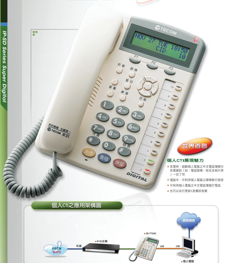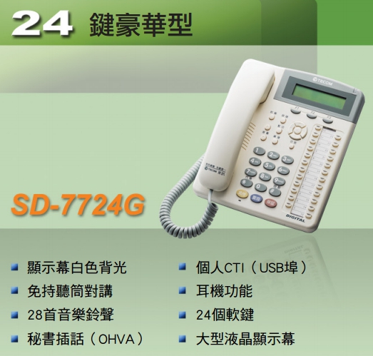 專案限量東訊SD-7724G(24鍵豪華型數位話機) 耳機功能 具免持對講 個人CTI(USB埠)