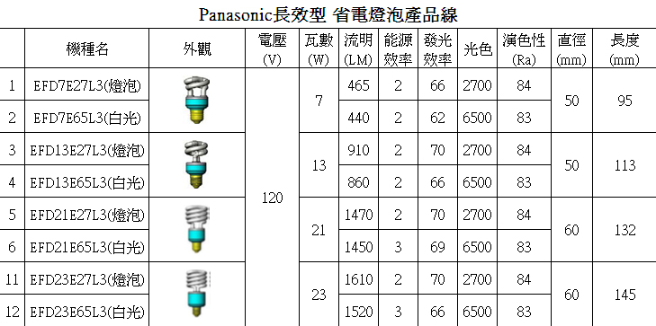 型號:EFD23E27L3國際牌長效型無鉛省電燈泡