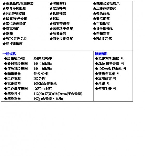 富洋無線電對講機-->SMP 328P(VHF) 商品查詢代碼:QK51445