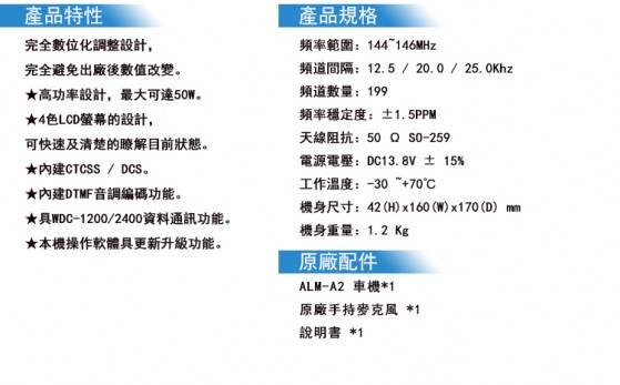 機子特性 全系列專為市區長距離無線電通信市場設計,提供車隊通訊最好的選擇,此系列機種經過調整可符合各國規範,並具備防水、耐候及高穩定性的特色,功率超大可達50公里長距離。適合超長距離通話,基地台、中繼器或車裝使用。