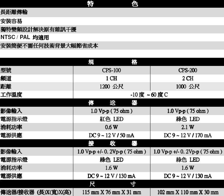CPS-200 抗干擾長距離傳輸組(2路影像)