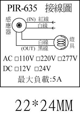 感應燈-->PIR-635商品查詢代碼:QK55636
