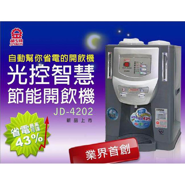專案限量晶工牌 光控溫熱全自動開飲機 JD-4202 =五大安全防護設計= 省電節能科技NO.1,最高省電達43%