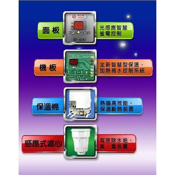 熱水瓶--> 晶工牌 光控溫熱全自動開飲機 JD-4202商品查詢代碼:QK57962