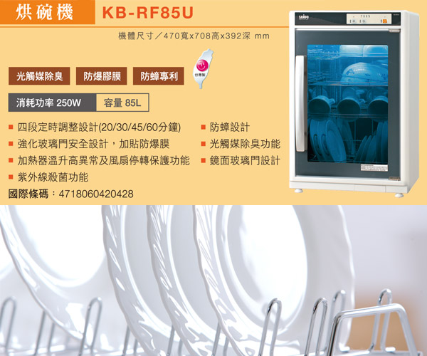型號: 聲寶四層光觸媒紫外線烘碗機(KB-RF85U)