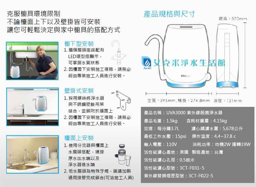 : 濾水器具-->3M UVA3000紫外線殺菌器商品查詢代碼:QK58992