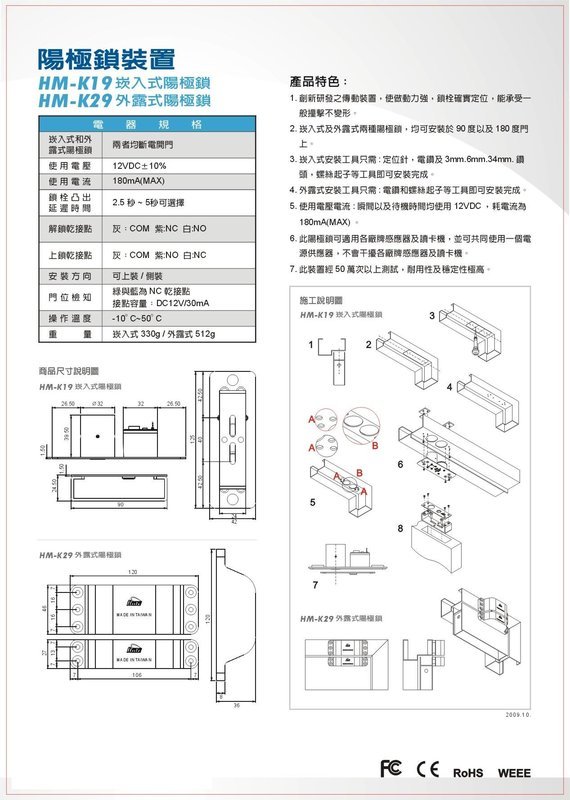 | 專案限量陽極鎖裝置HM-K19 崁入式陽極鎖 | ||||||||||
