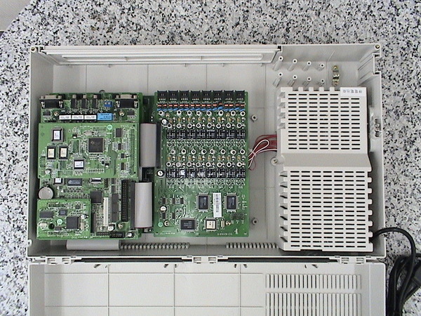機櫃中內含電源供應器、408 主機板、串櫃連接線 輸入電源:AC90∼240V/ 50-60Hz 輸出電壓:DC 24V(24∼35V)/ 4A 充電電壓:DC 26.2V∼27.0V 充電電流:0.5A 外加電池:24V/20 AH 以下 振鈴電壓:65Vrms 中央控制卡:負責控制各卡片的資料與聲音,提供 4 路自動總機或12 路自動總機或12 路語音信箱及中文遠端設定卡、串櫃等擴充插座、8 路外線卡或T1/E1PRI 卡,並提供2 組RS-232 供流水資料輸出及電腦設定專用,另具內部保留音樂、兩組外接音樂源端口、外接擴音器端口、外接擴大鈴端口。 |
