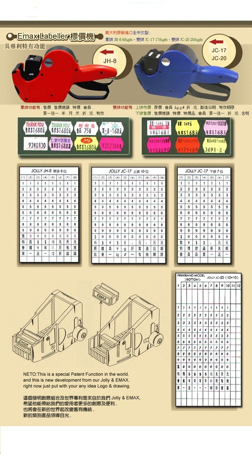 標價機-->JOLLY標價機JC-17商品查詢代碼:QK60137