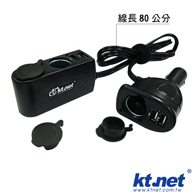 ◆80cm延長線擴充2個點煙器及2組USB,總安培數3600mA