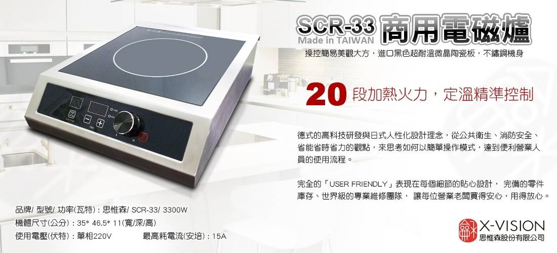 專案限量尚龢堂SCR-33 商用電磁爐 3300W,操作簡單免安裝,加熱速度快,各大連鎖品牌指定機種##旋鈕式##220V商用##