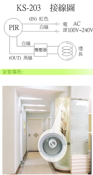 4. 使用PIR-605隱藏式感應器D型頭,感應時間可調,搭配裝潢最美麗。