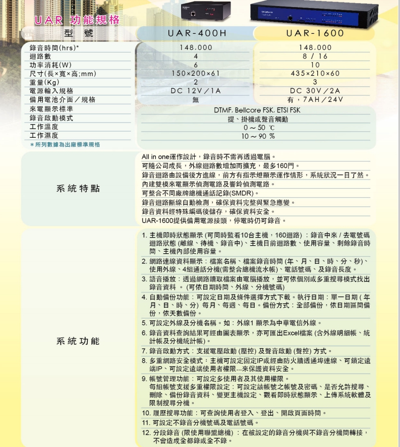 電話數位錄音-->UAR-400H商品查詢代碼:QK63137