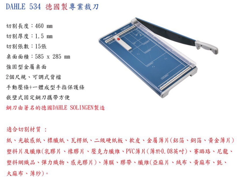 DAHLE-->德國DAHLE 534 A4裁紙器商品查詢代碼:QK63473