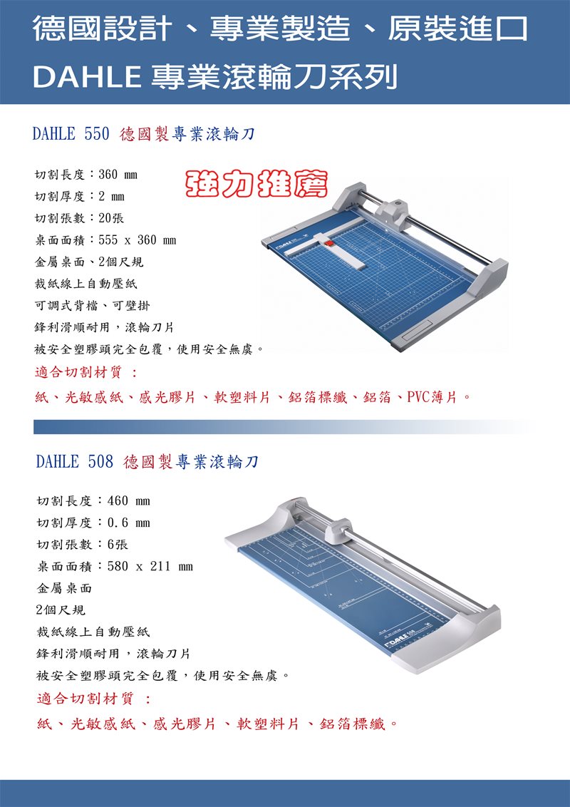 型號:DAHLE 德國大力 550裁刀(A4)