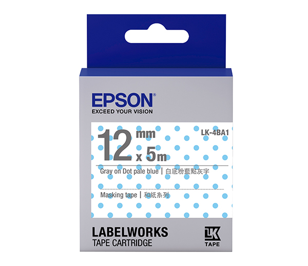 標籤帶-->EPSON LK-4BA1 C53S654433標籤帶(和紙12mm )粉藍/透明灰商品查詢代碼:QK63690
