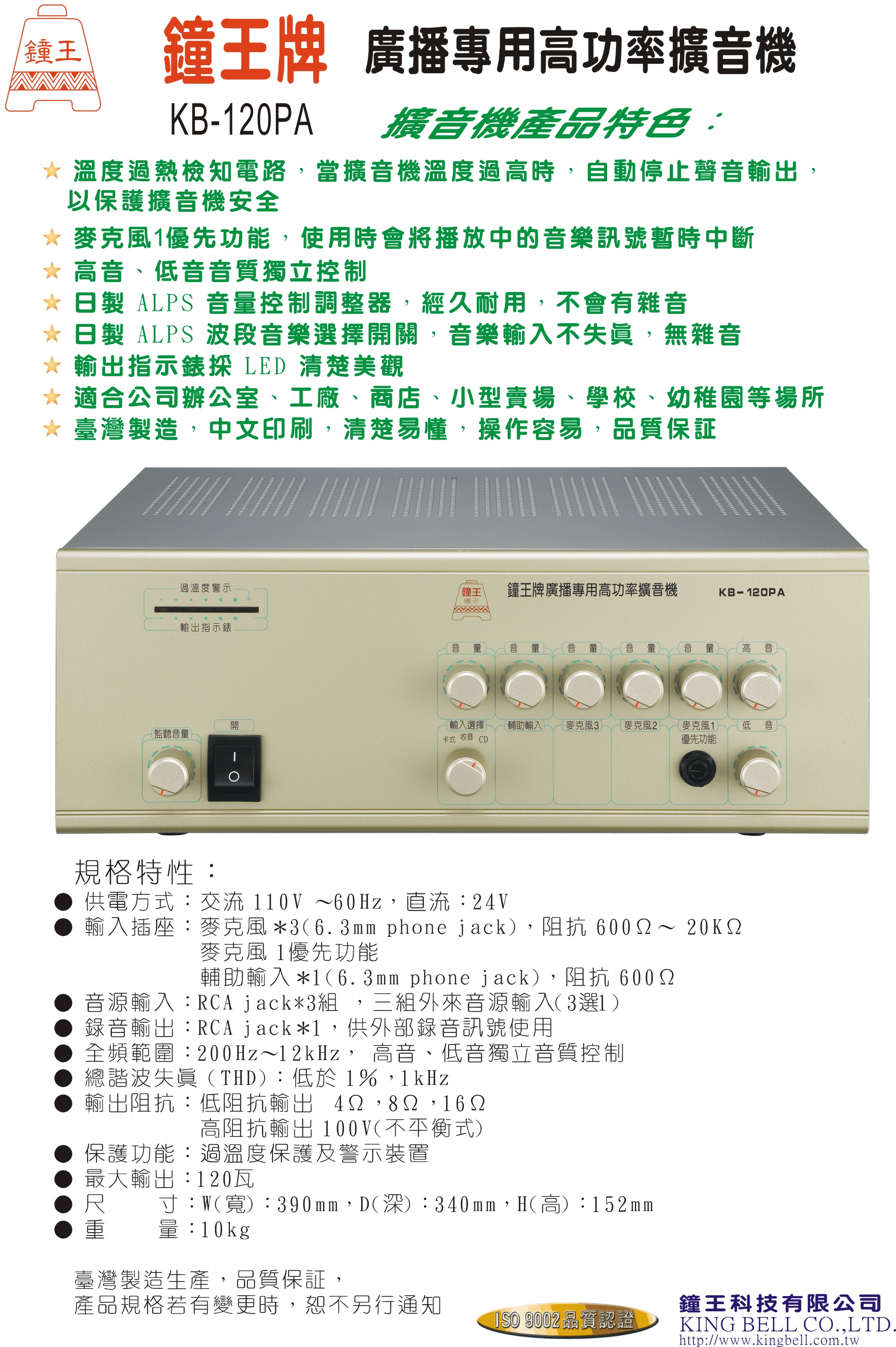 | : 鐘王PA擴音系統-->KB-120PA+SW-240V商品查詢代碼:QK63950 | ||||||||||||