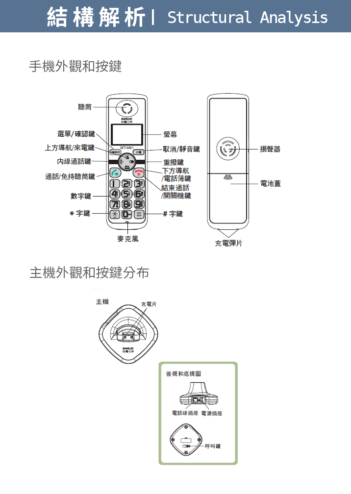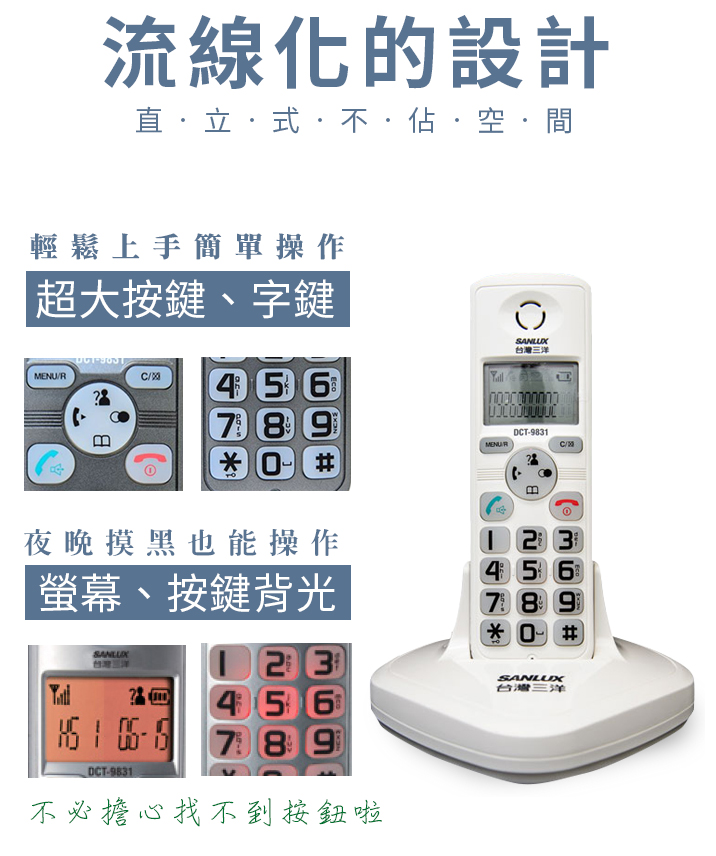 型號:SANLUX台灣三洋 免持擴音數位無線電話 DCT-9831 (白)