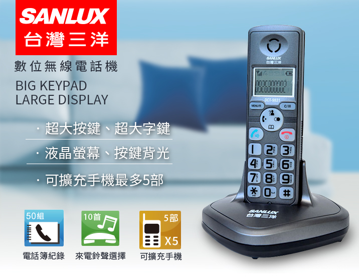 型號:SANLUX台灣三洋 免持擴音數位無線電話 DCT-9831 (鐵灰)