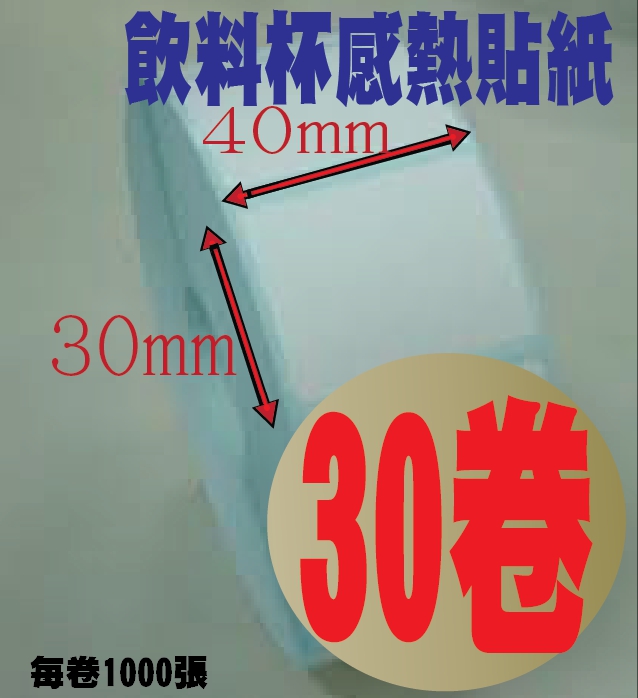POS熱感應紙捲-->熱感貼紙/感熱貼紙 40mm*30mm 飲料杯貼紙 40x30 直接可列印 不需碳帶30件超值組合 好朋友分享匯款價商品查詢代碼:QK64040