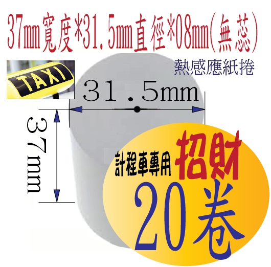 POS熱感應紙捲-->招財計程車新表專用熱感應紙捲37*31.5*08(無蕊)*外感20件超值組合 好朋友分享匯款價商品查詢代碼:QK64047