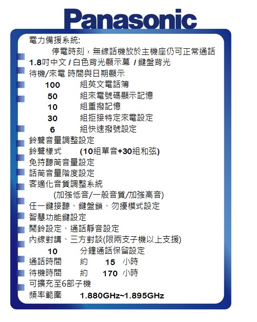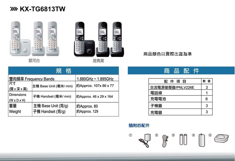 5.8GHz數位式無線電話-->KX-TG6813TW商品查詢代碼:QK64515