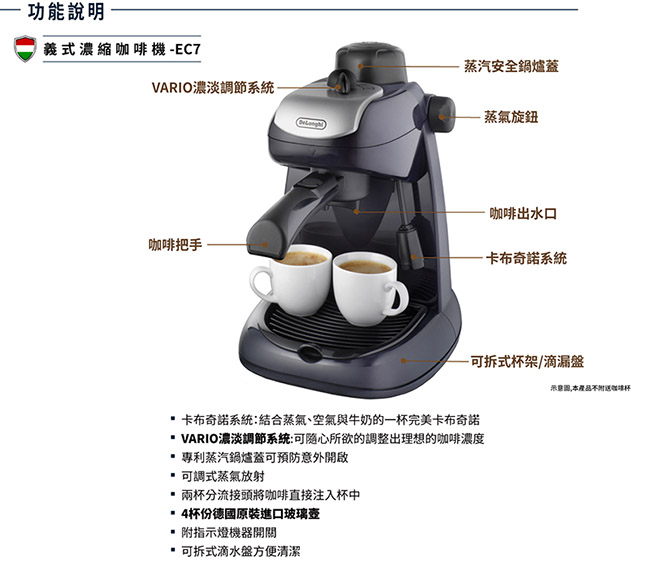 型號:迪朗奇義式迷你濃縮咖啡機EC7    供貨狀況: