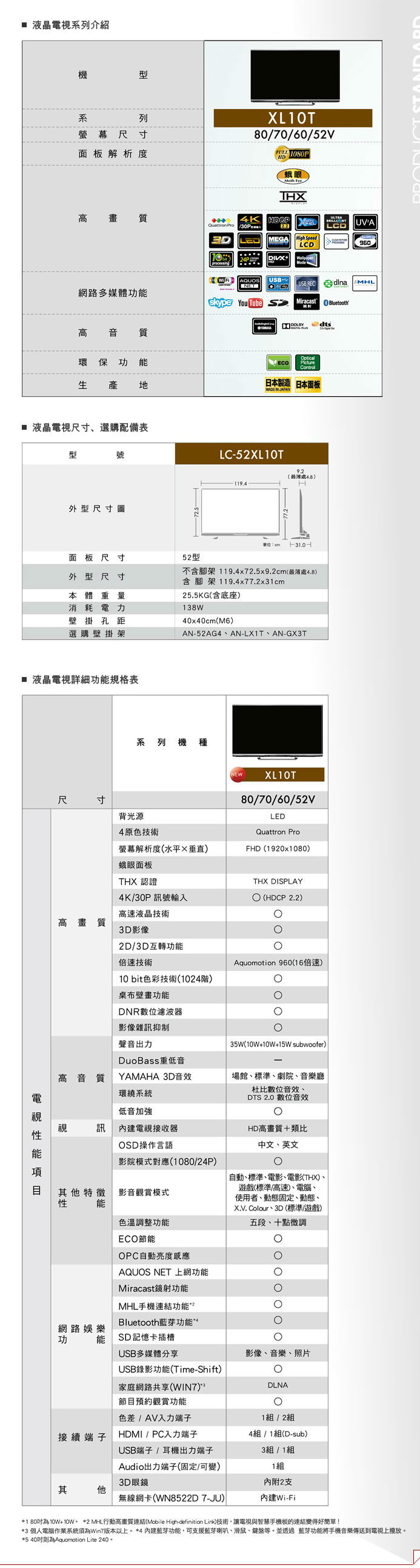 型號:SHARP 52型3D四原色LED液晶顯示器LC-52XL10T