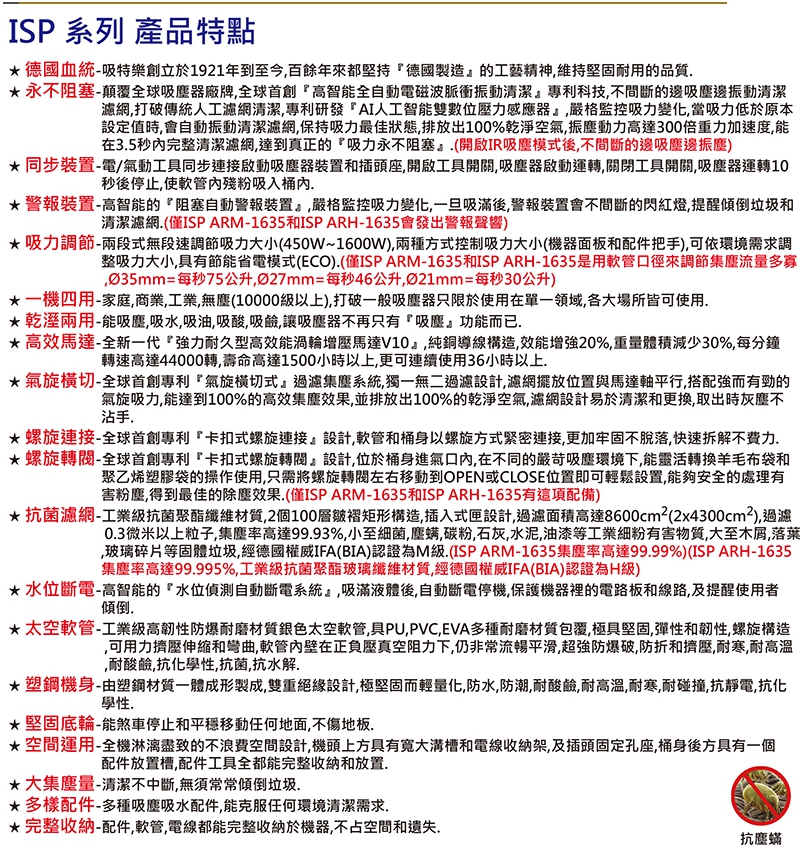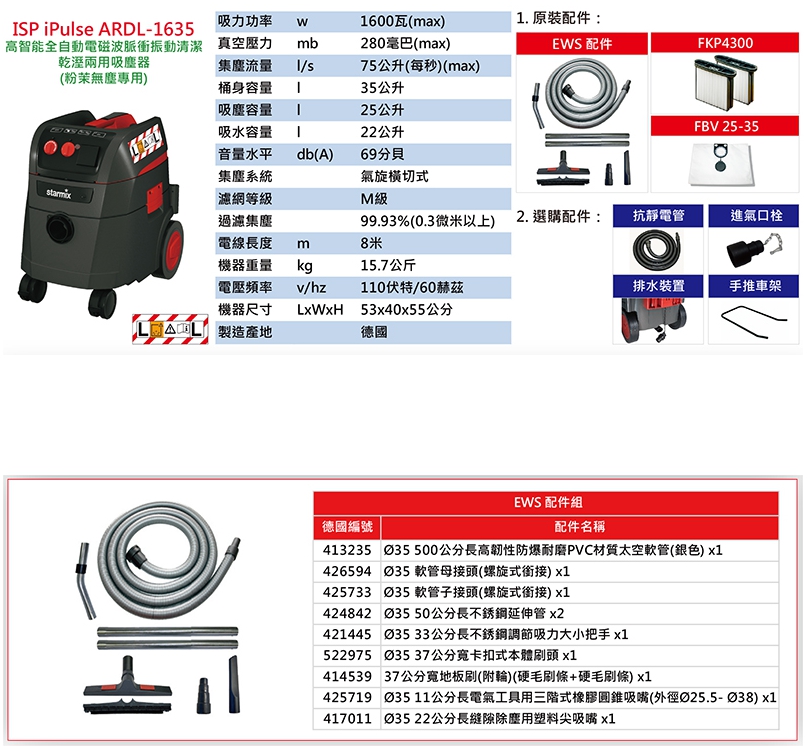 專案限量Starmix 德國吸特樂 ISP ARDL-1435改型號 ISP iPulse ARDL-1635全 ISP iPulse ARDL-1635 高智能全自動電磁波脈衝振動清潔乾濕兩用吸塵器(粉茉無塵專用)保固一年半1635是220V